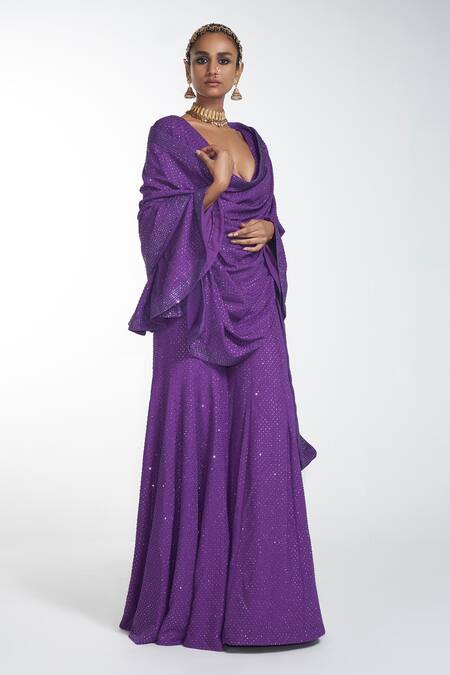 Purple Lining Butter Embellished Crystal V Jumpsuit With Dupatta