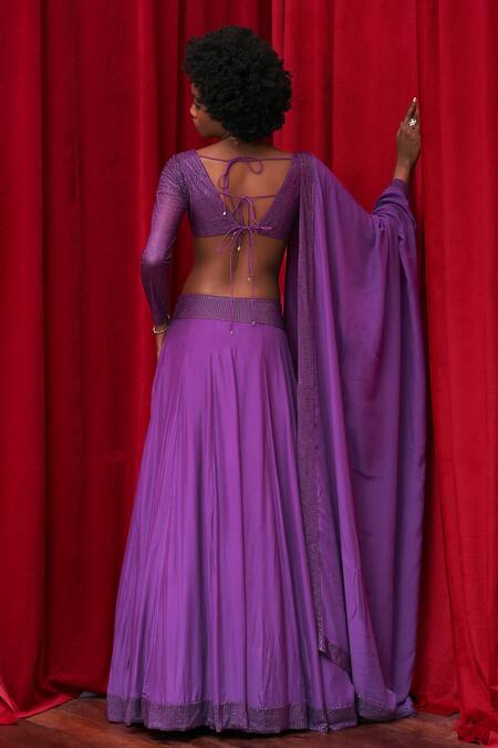 Purple Lehenga And Dupatta Flat Chiffon Embellished Crystal Haze Blouse Set