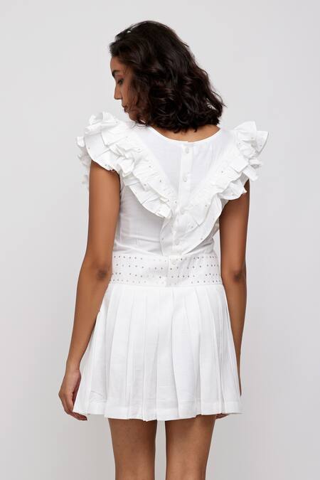 Buy_Daisydays.CO._White Cotton Modal Embroidered Sequin Work Iuan Knife Pleat Dress _Online_at_Aza_Fashions