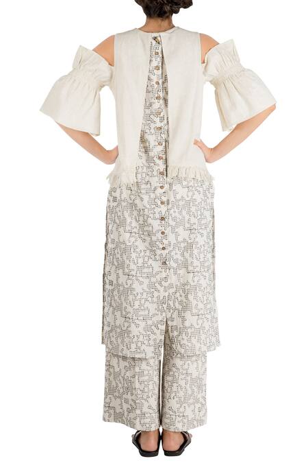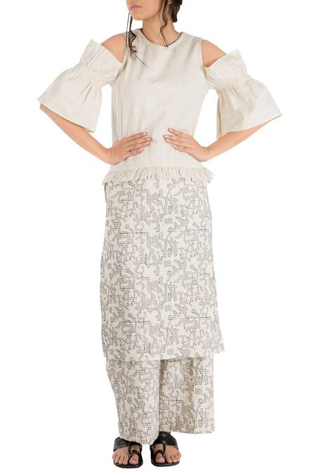 Buy_Nakita Singh_Off White Ivory Cotton Embroidered Straight Loose Pants_at_Aza_Fashions