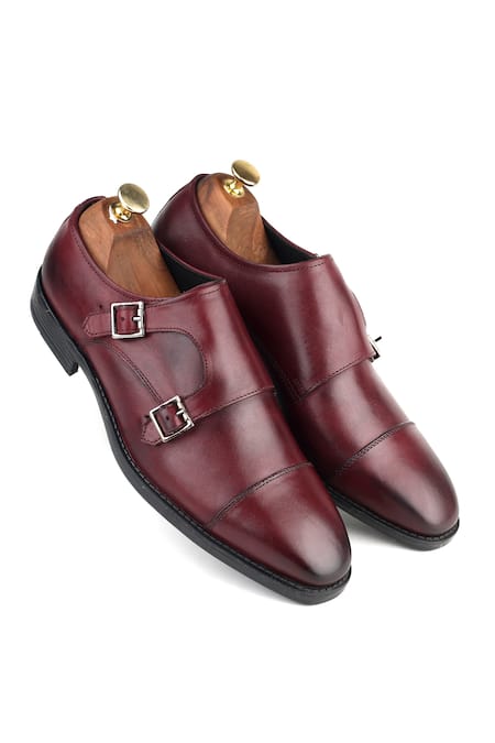 Buy_Ivrah_Brown Bordo Double Strap Leather Shoes_Online_at_Aza_Fashions