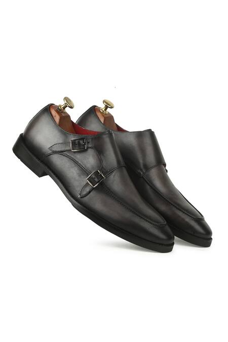 Buy_Ivrah_Gray Grey Leather Dual Buckle Slip Ons_Online_at_Aza_Fashions