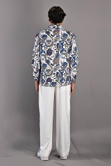 Buy_Bohame_Off White Cotton Satin / Suiting Digital Print Jacek Shacket And Pant Set_Online_at_Aza_Fashions