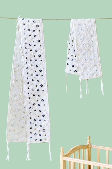 White Muslin Printed Evil Eye Hand Baby Bed Bumper 2 Pcs Set