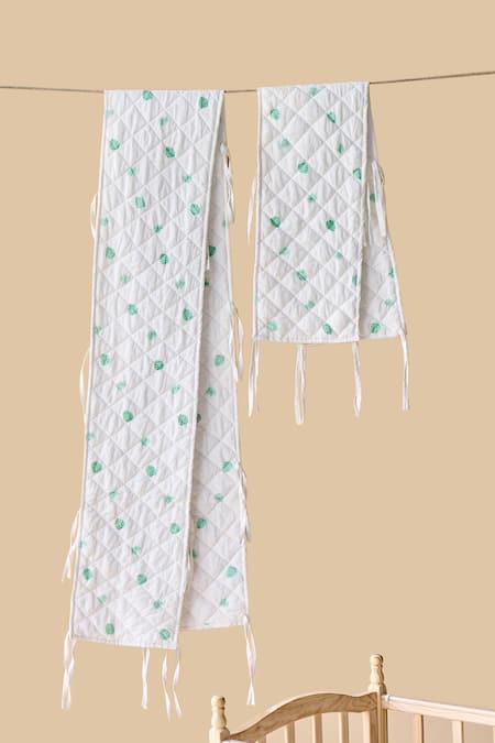Rectangle shaped, Thread Count: 210, Dimensions W x L (in inches): 13 x 156, Weight (in gms): 500, Note: Only selling 2 pcs baby bed bumper shown in the image