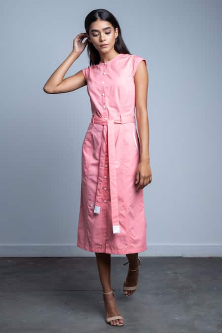Buy_Doodlage_Pink Upcycled Cotton Plain Round Janet Shirt Dress_at_Aza_Fashions