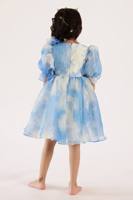 Blue Organza Printed Abstract Cloud Dreamer Dress