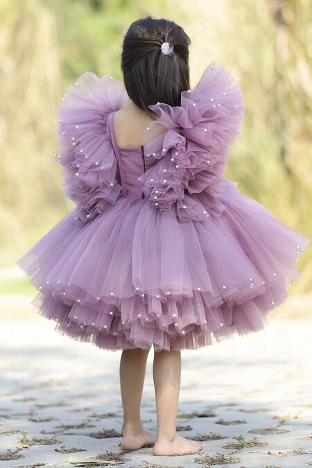 Purple Silk, Net, Satin, Linen Pearls Princess Chloe Embellished Dress