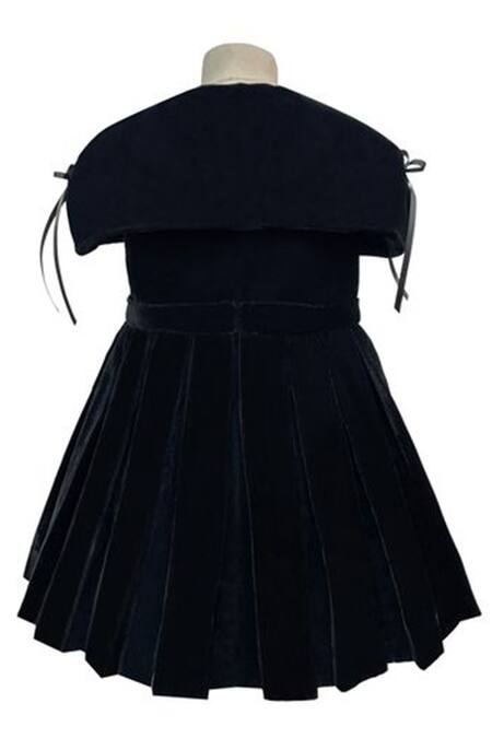 Black Velvet Beads, Bows Pleated Embellished Dress