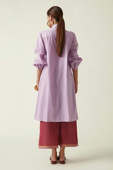 Purple Cotton Handloom Collared Neck Jason Tunic