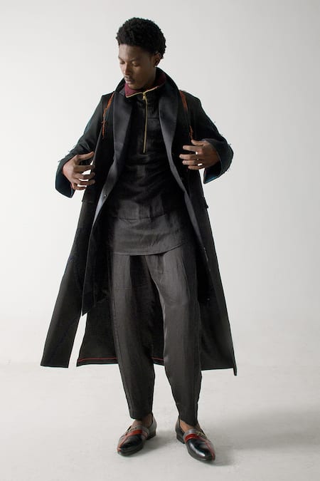 Black Modal, Rayon Embroidery Farisha Long Overcoat