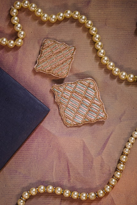 Multi Color Embroidered Leaf Metal Kalangi Set Of 2
