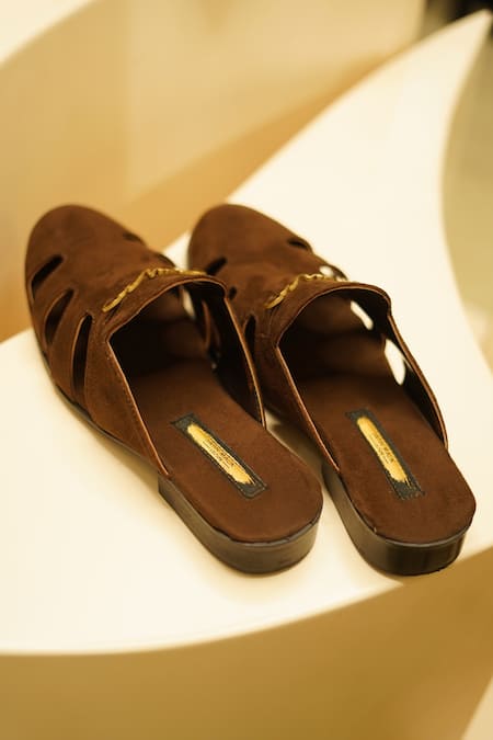 Buy_Jatin Malik_Brown Side Cut-out Mules _Online_at_Aza_Fashions