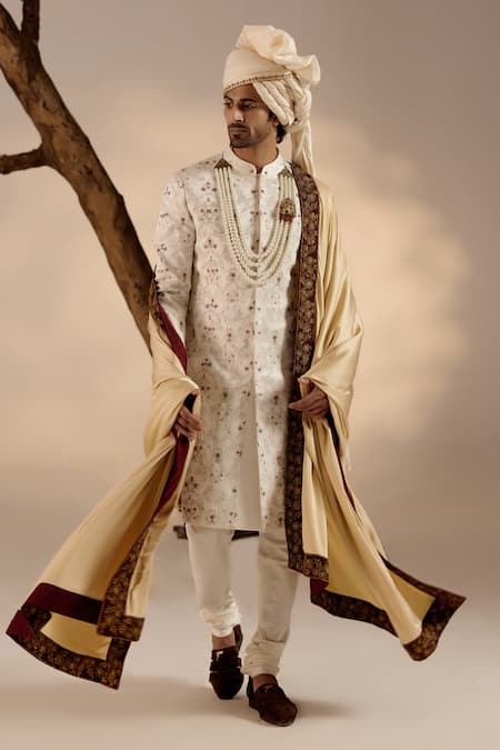 All over dual color flower details, Dabka highlighting on sherwani, Full sleeves design on kurta
