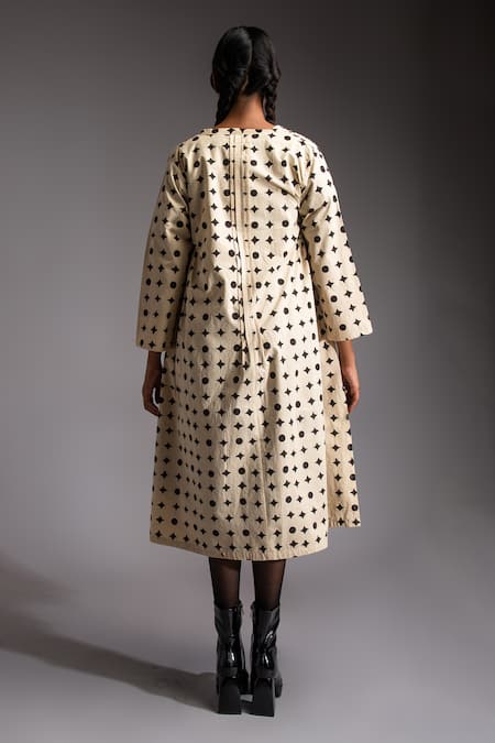 Black Chanderi, Cotton Satin Nomad Gathered Flare Buttoned Yoke Midi Dress