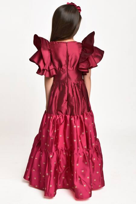 Buy_Jelly Jones_Maroon Silk Embroidery Tiered Gown_Online_at_Aza_Fashions