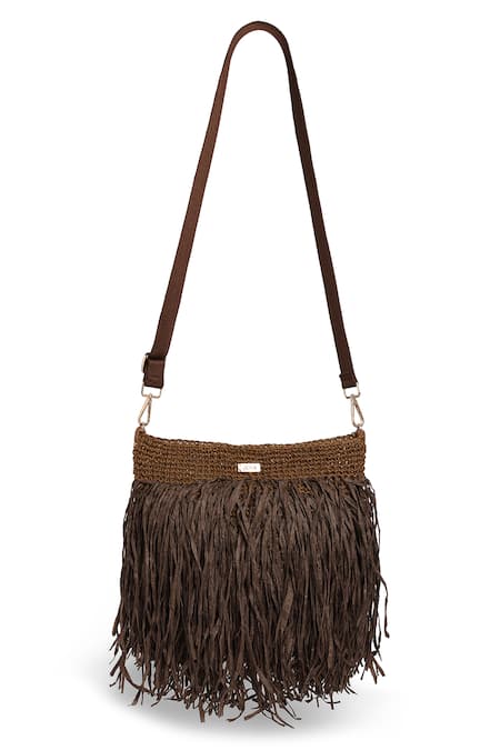 Tassel fringes creating a voluminous look, Gold tone hardware for added elegance, Handmade nature ensures uniqueness in each piece