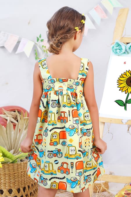 White Cotton Graphic Print Dress