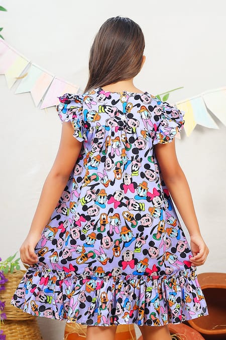 White Cotton Mickey Mouse Print Dress
