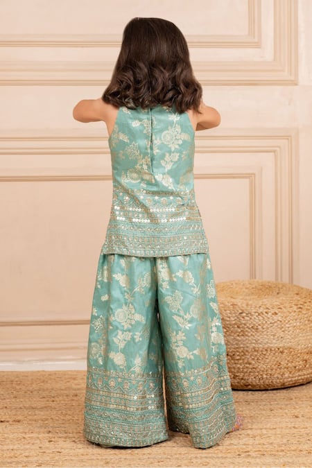 Mint Silk Embroidery Green Top And Palazzo Set
