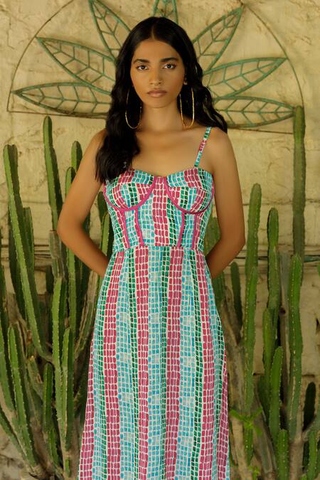 White Bamboo, Satin Piping Sweetheart Neck Printed Slip Dress