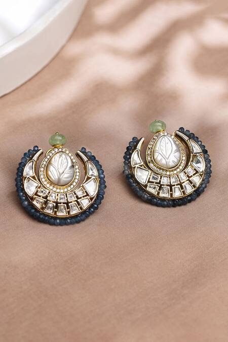 Gold finished chandbali stud earrings featuring kundan, stones, and beads embellishments