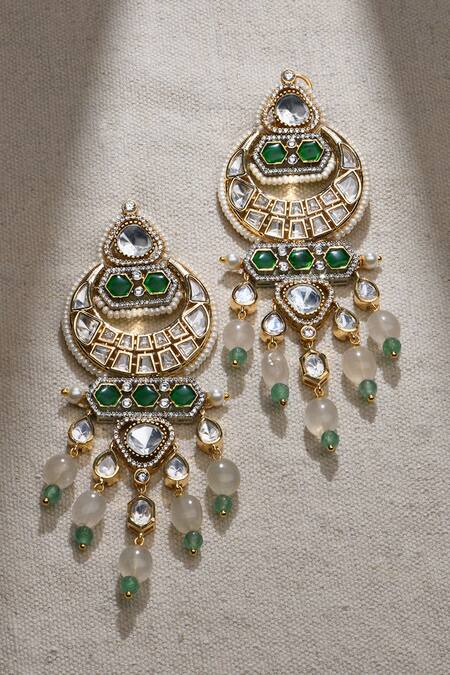 Green Beads, Stones, Zari Dazzling Embellished Chandbali Dangler Earrings