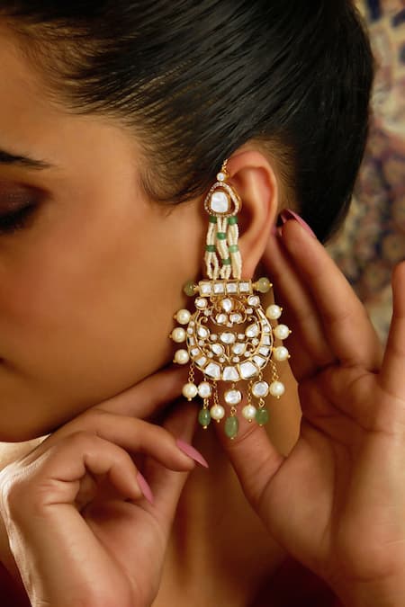 Green Stones, Beads Ethereal Pearl Embellished Chandbalis