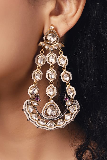 Hexagon carved design with intricate detailing, Polki and pearl embellishments, Push back clasp for secure fit