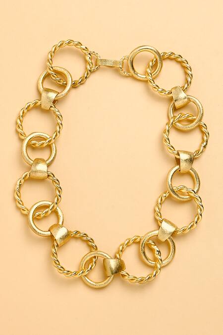 Gold finish multi loop choker necklace in brass base.