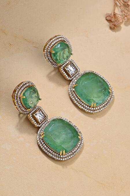 Green Beads, Stones, Diamonds Lustrous Embellished Dangler Earrings