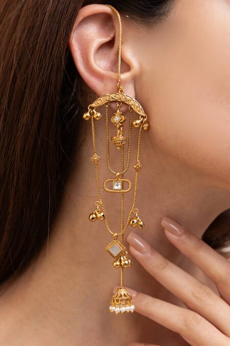 Unique design with dangling elements, Decorative charm at the bottom, Intricate embellishments throughout