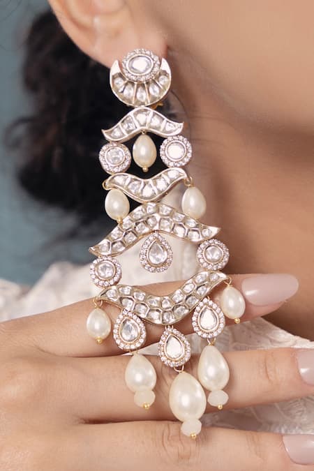 Mughal carved cutwork design, Polki stone embellishments, Pearl drop detailing