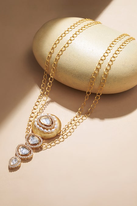 Gold pendant necklace featuring polki, kundan, and pearl embellishments
