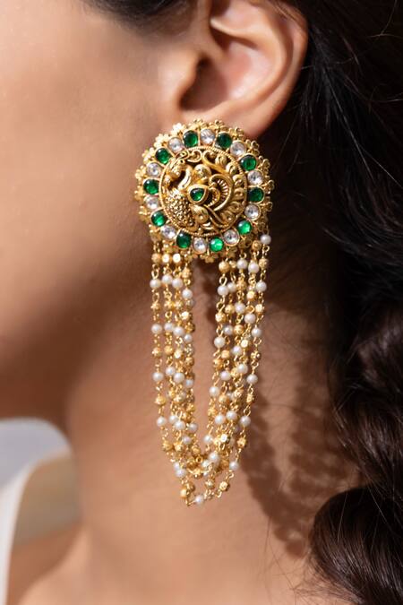 Gold Plated Gemstones, Pearls Nayeli Finish Earrings
