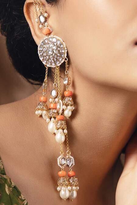 Geometric carved design, Polki embellishments, Pearl drop accents