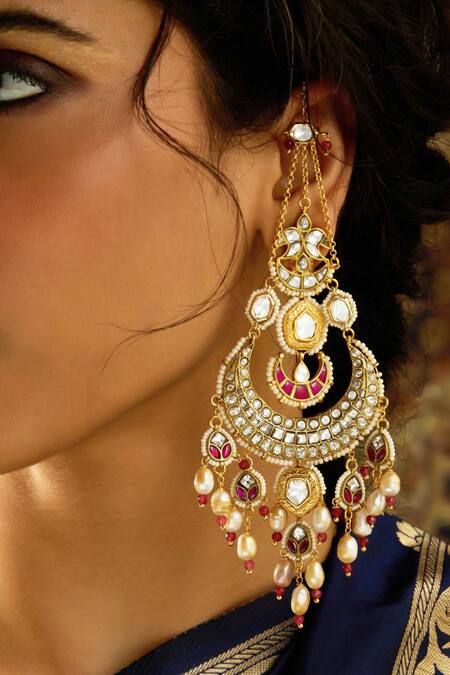 Gold Plated Stones, Beads Regal Studded Chandbalis