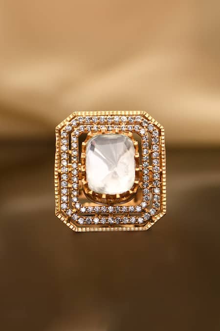 Gold ring featuring a central polki stone surrounded by kundan accents