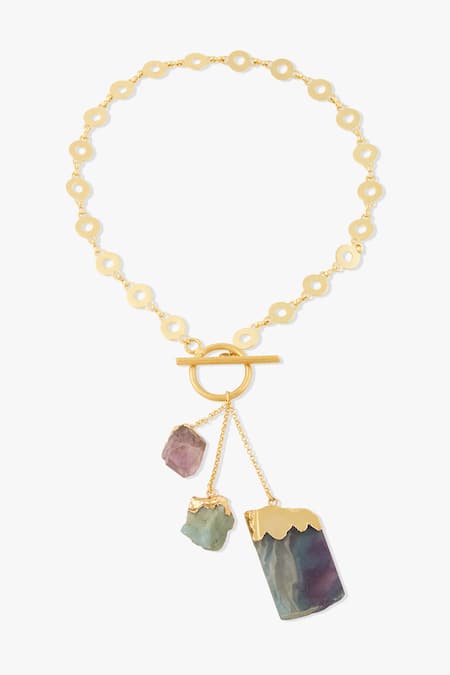 Gold Veloura Necklace featuring cascading gold quartz stones and a toggle clasp
