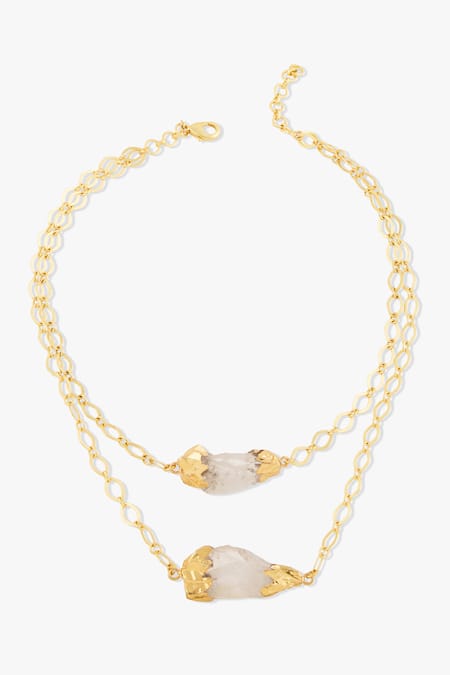Gold quartz pendant necklace featuring faceted stones along a sleek chain
