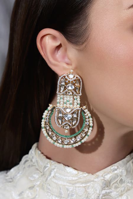 Gold Plated Pearls, Stones, Crystals Zamrud Noor Chandbalis