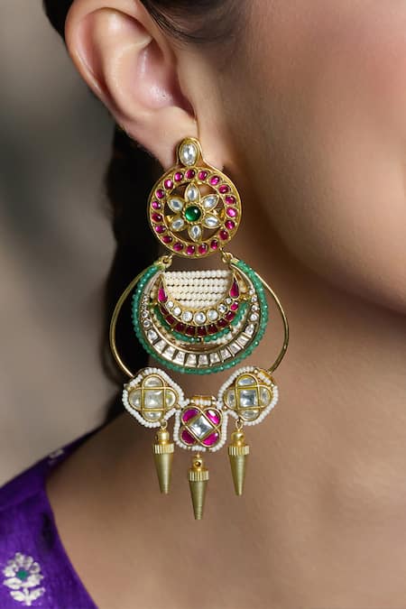Multi Color Stones, Pearls, Beads Zewar-e-shaahi Chandbalis Earrings