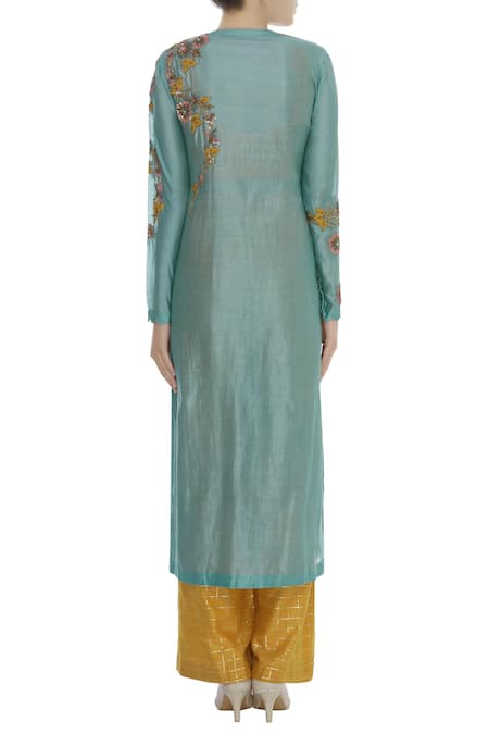 Fabric: Chanderi Silk, Care: Dry clean only, Fit: Relaxed, Model's Height: 170cm/5'5