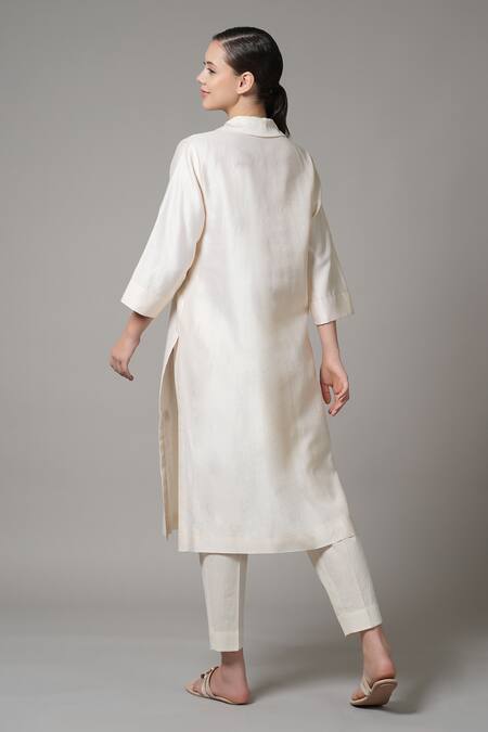 Ivory Chanderi Embroidery Collared Kurta And Pant Set