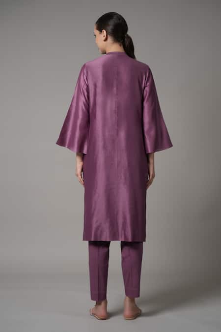 Buy_Joy Mitra_Purple Chanderi Embroidery Collared, V-neck Placement Kurta And Pant Set _Online_at_Aza_Fashions