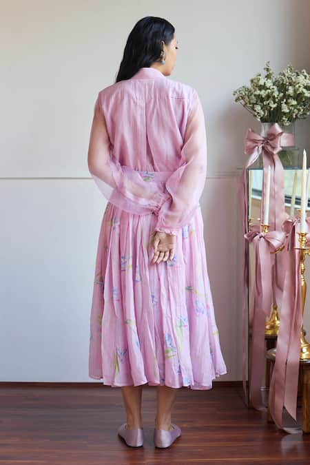 Purple Chanderi Tulip Florette Print Midi Skirt