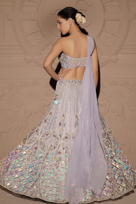 Purple Net, Satin Periwinkle Fleur Embellished Lehenga With Draped Bustier