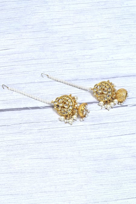Buy_Just Shradhas_Gold Plated Pearls, Stones Kundan And Embellished Chandbalis _at_Aza_Fashions