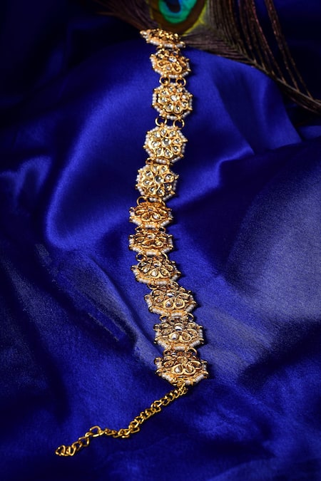 Intricate kundan embellishments, Pearl detail on edges, S hook closure for secure fit