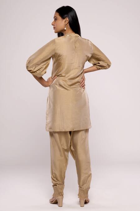 Gold Satin Modal Hand Embroidered Jute Tassels Patiala Pant